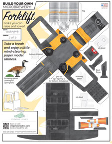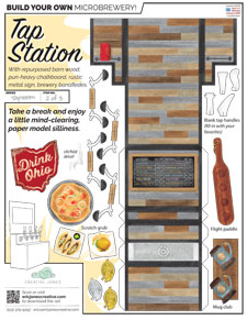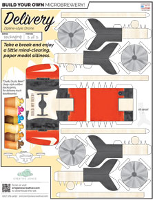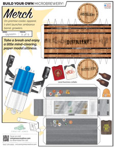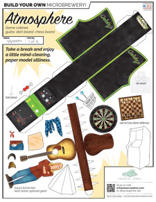 BUILD YOUR OWN MICROBREWERY! Take a break and enjoy a little mind-clearing, paper model silliness. Double roller, grain bags, bookshelf speaker, brewing crew with optional gear, 5 gal bucket. DOWNLOAD Legacy-style copper, step ladder, measuring cup, hop bags, brewery crew with optional gear. DOWNLOAD Motivational poster, gloves, clipboard, hose, doggie. DOWNLOAD Labeling, communication, brewery tools, QC. DOWNLOAD Forks you can raise and lower, keg, boot warmer, cones, grain-hungry pest. DOWNLOAD Zipline-style drone. DOWNLOAD Game cabinet, Dreadnought acoustic, pub dartboard, chess board, brewery crew with optional gear. DOWNLOAD With reclaimed barnwood planks, pun-heavy chalkboard, rustic metal sign, brewery bona fides. DOWNLOAD On-premise cooler, apparel, t-shirt launcher, ambiance barrel, growler. DOWNLOAD Rotating cedar gazebo?Flamed 1950s Rat Fink delivery truck?Train car taproom on tracks, circling the brewery?Our custom shop geeks can tackle any challenge![email protected] | (513) 379-9293